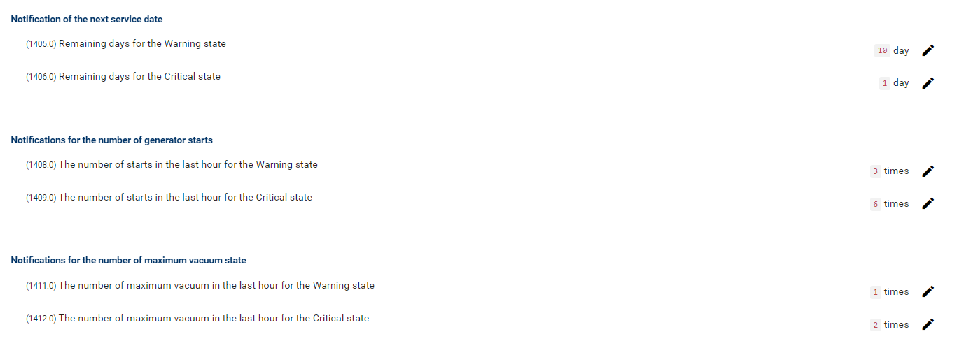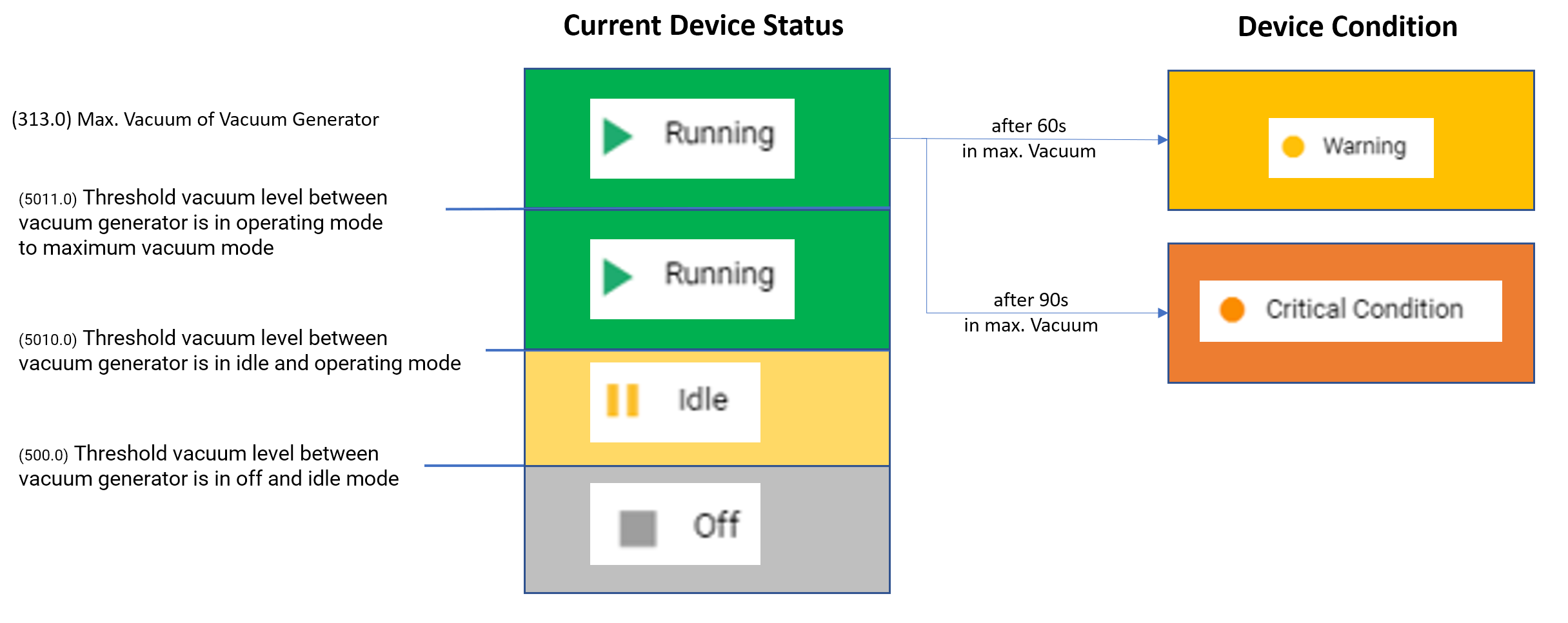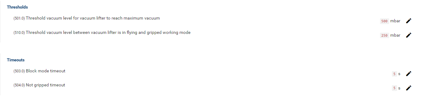 Device Management / Parameter → Settings for Thresholds of vacuum generator