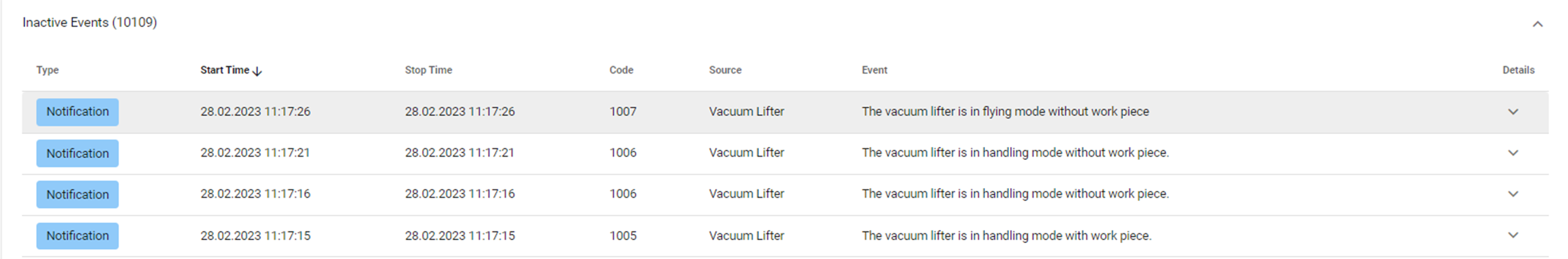 Based upon these settings, the Vacuum Lifter will send Events to the messaging queue.