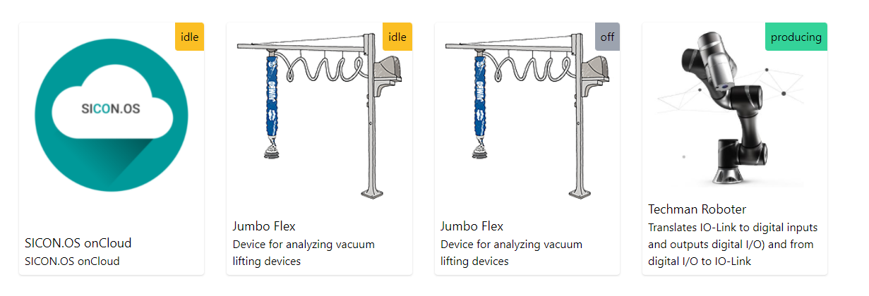 That’s it! We’ve now already created a responsive list of devices together with a picture, basic descriptions and a production status in the top right corner of the cards.