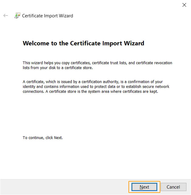 • The Certificate Import Wizard will get open.