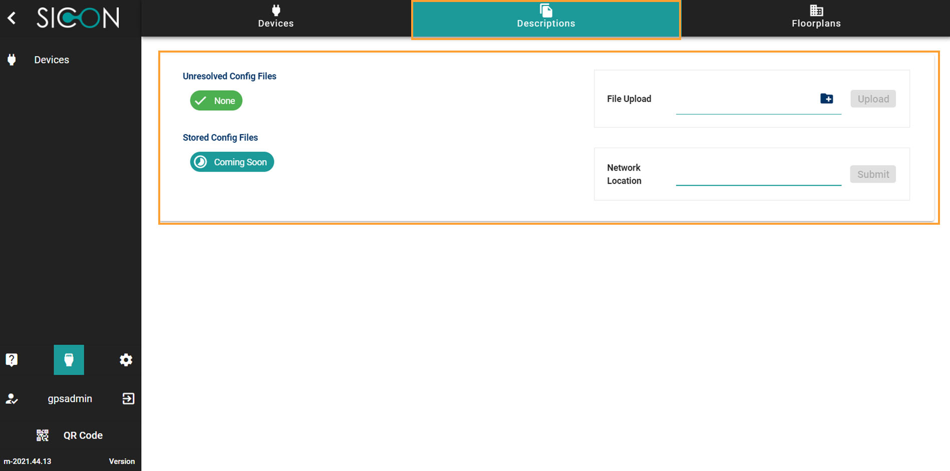 Under Description, you can upload device configuration files (IODDs, SDDs) or provide a network address for SICON.OS to fetch configuration files.