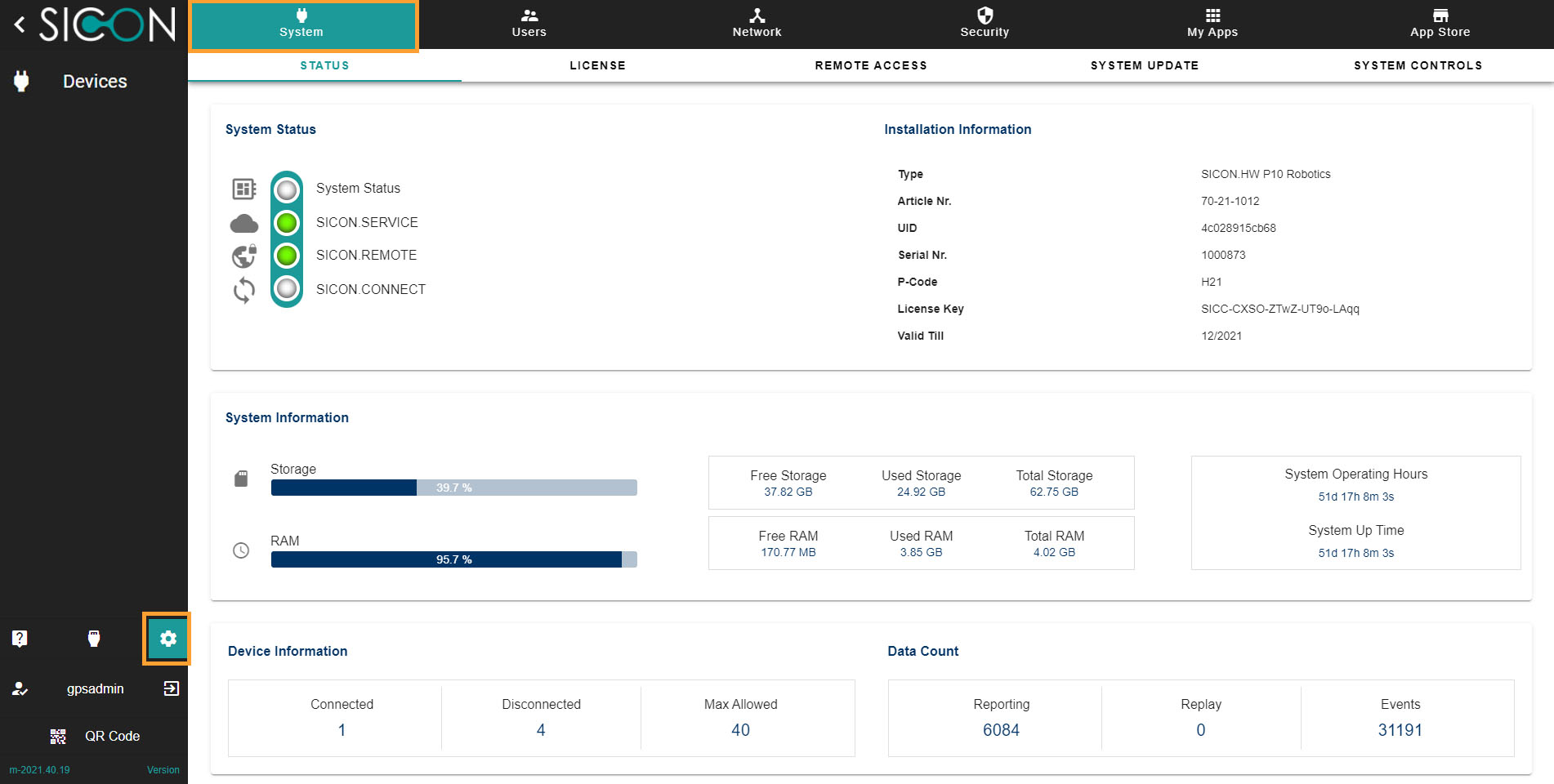 • System status: It shows you your device status whether your device is active on SICON.SERVICE, SICON.REMOTE, SICON.CONNECT