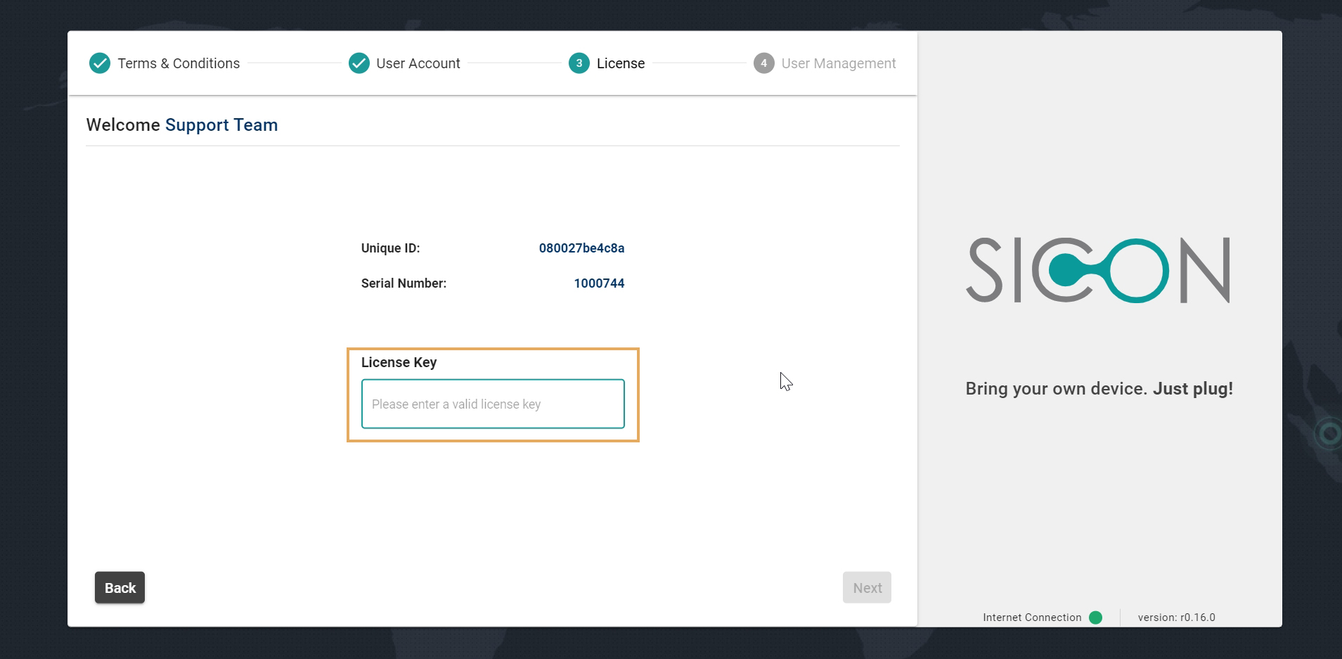 Please note down the Username and Password as it is required to login to SICON.OS.