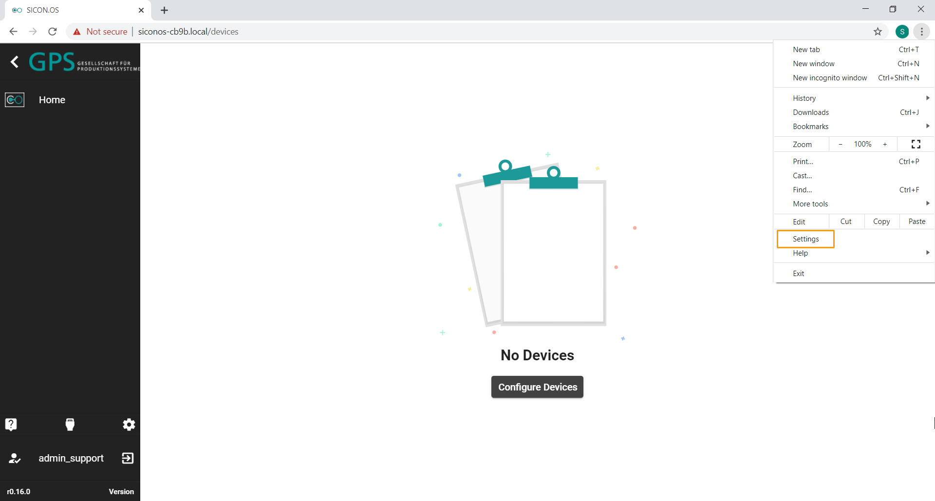 • In Edge browser open your SICON.OS website.