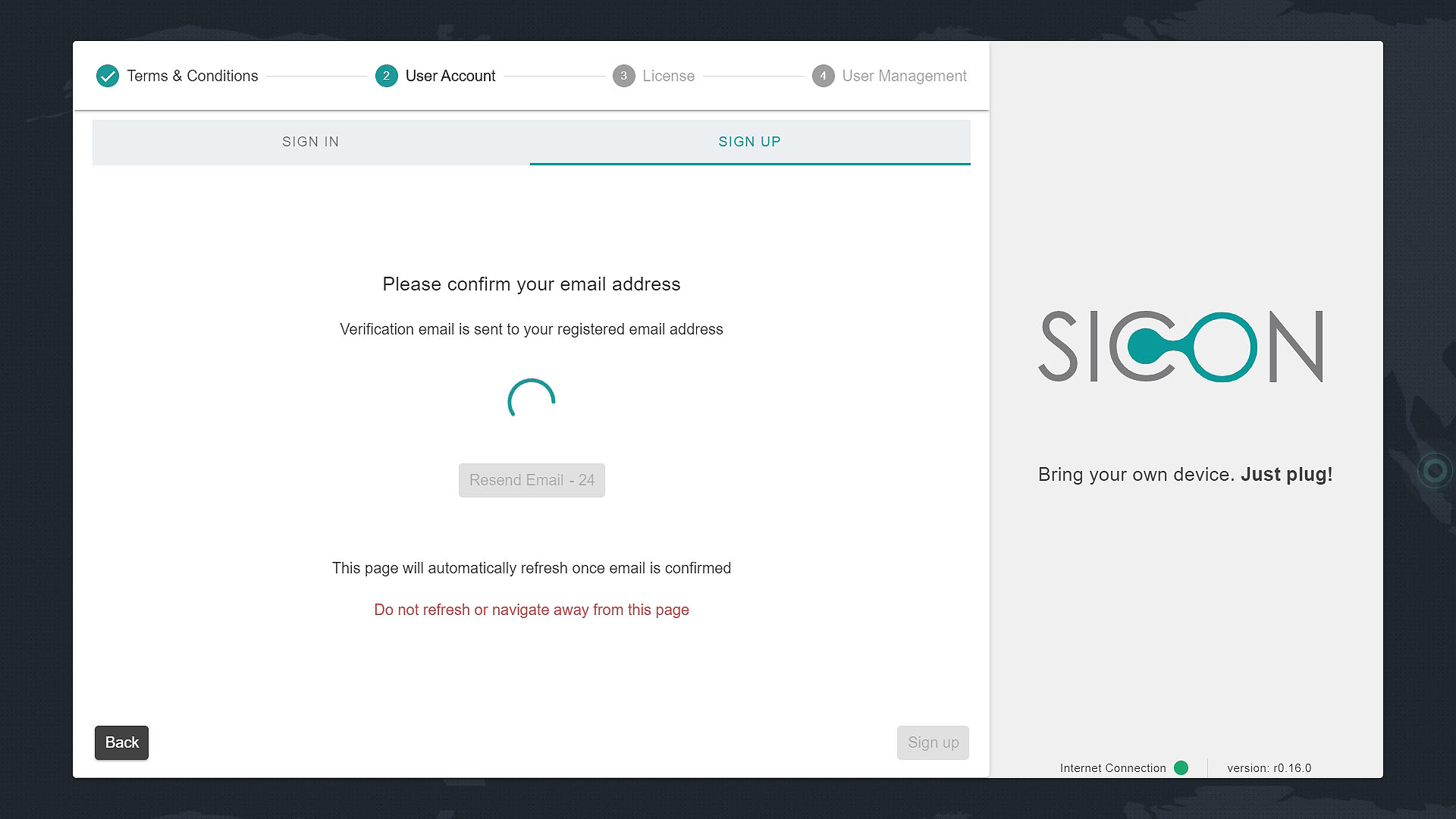 Please note down the Username and Password as it is required to login to SICON.OS.