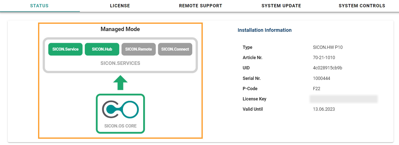 • Managed Mode: It shows you your device status whether your device is active on SICON.SERVICE, SICON.Hub, SICON.REMOTE, SICON.CONNECT