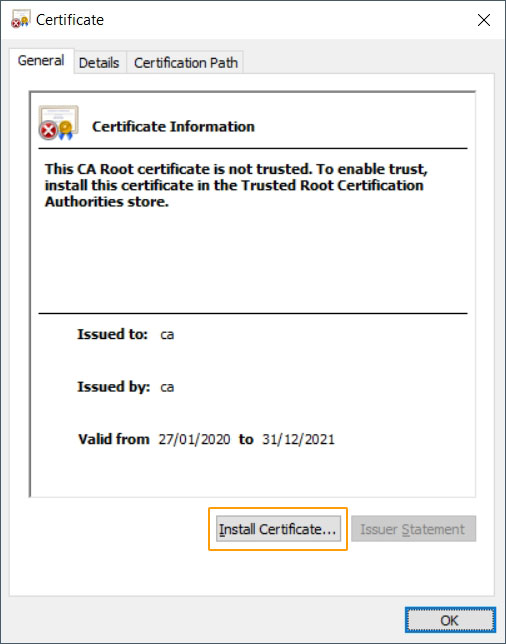 To start install procedure, click on "Install Certificate.."