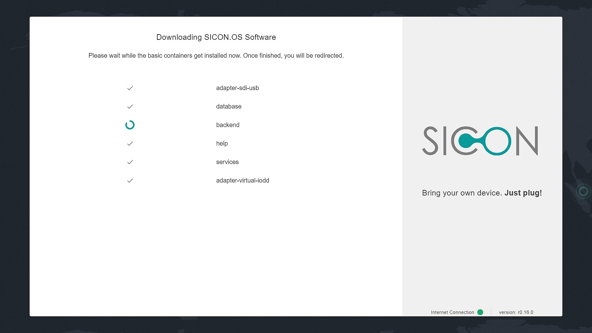 Wait until all the basic containers get installed. After that you will be redirected to the main SICON.OS login page.