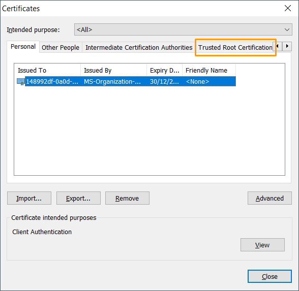 Select the "Trusted Root Certification".