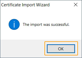 The certificate will get import successfully.