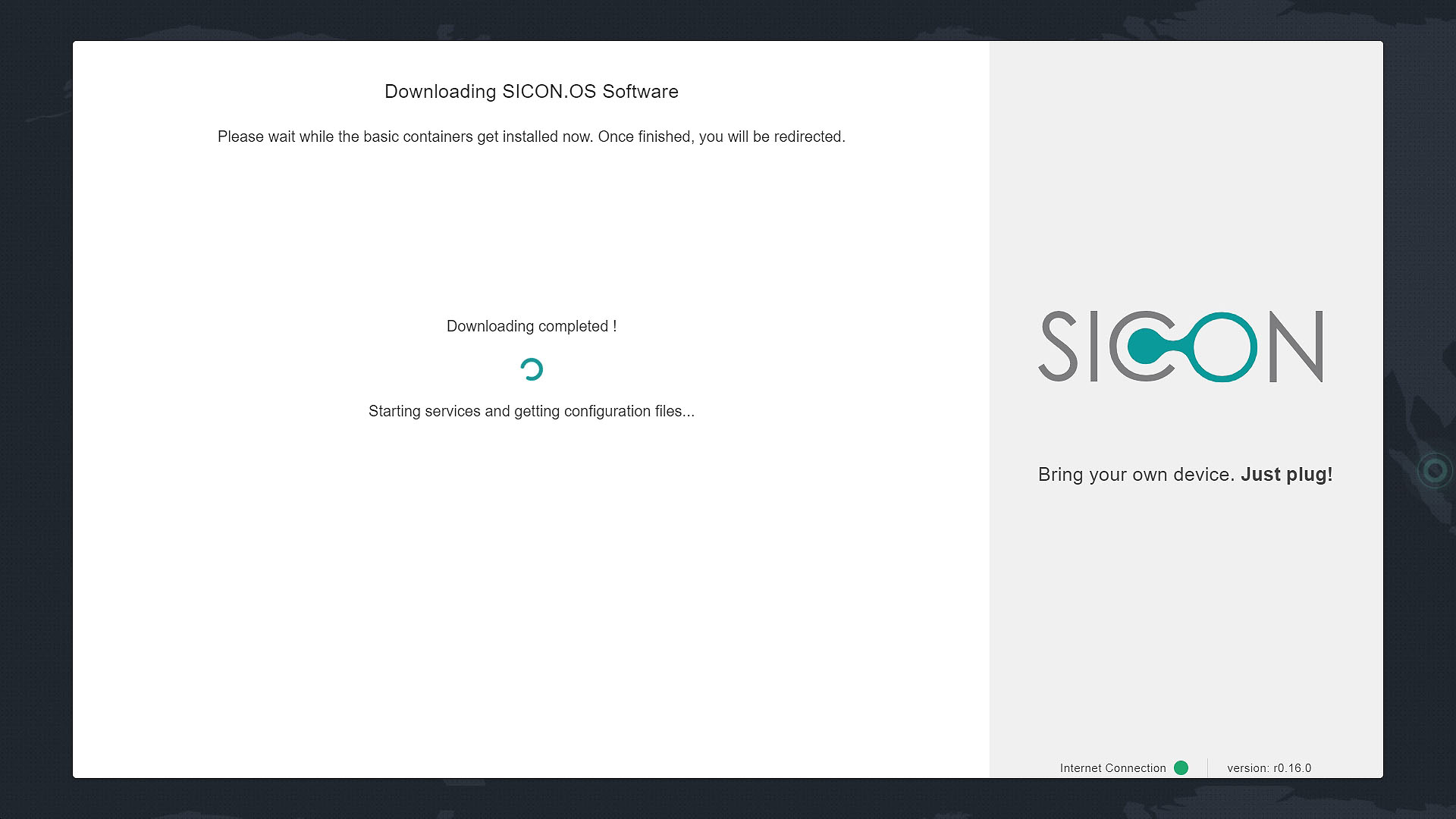 Wait until all the basic containers get installed. After that you will be redirected to the main SICON.OS login page.