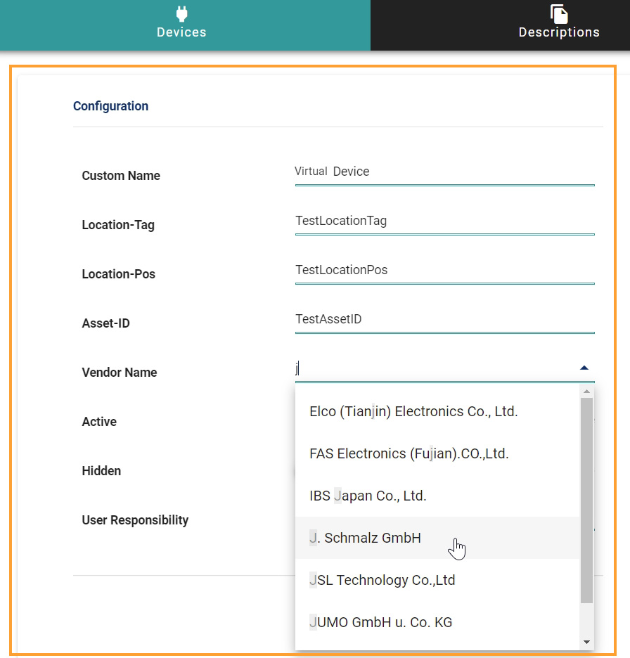 • Vendor Name (Select the vendor of the virtual device),