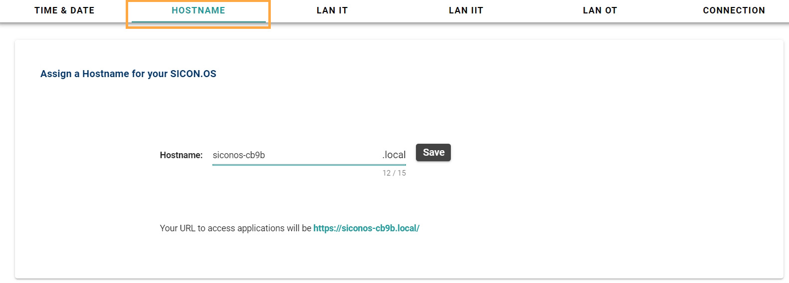 Here you can see the Hostname of your SICON.OS to access the applications of SICON.OS