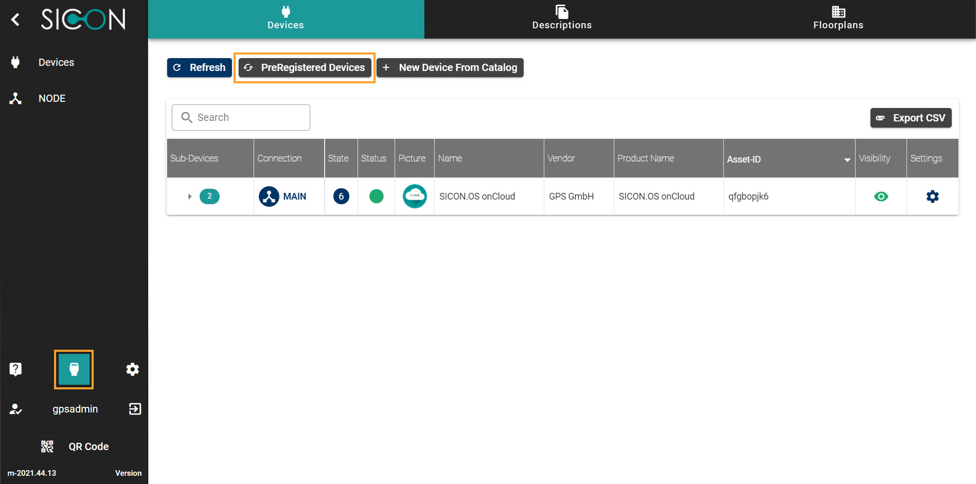You can find the devices which are discovered by SICON.OS and are in PreRegistered state. These devices can then be registered to the SICON.OS.