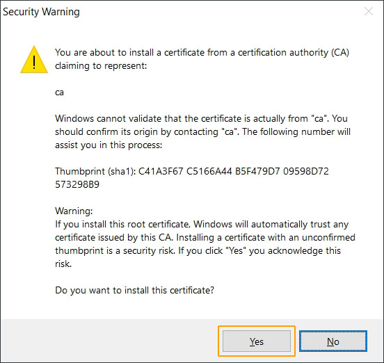 1. Add an exception in your browser (Firefox, Chrome and Edge browser).