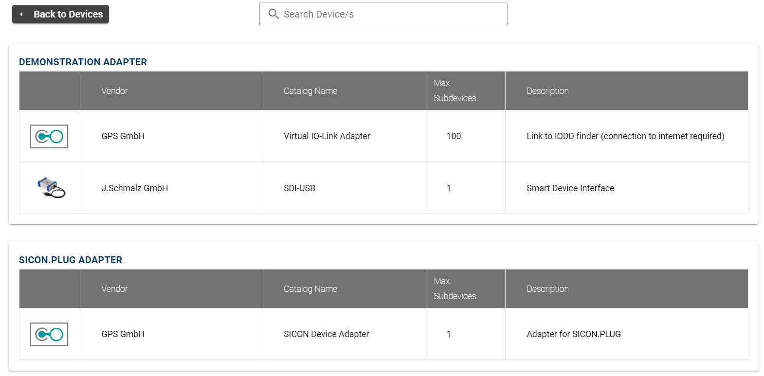 New Devices from Catalog: To add a device manually to SICON.OS, you can select this option.