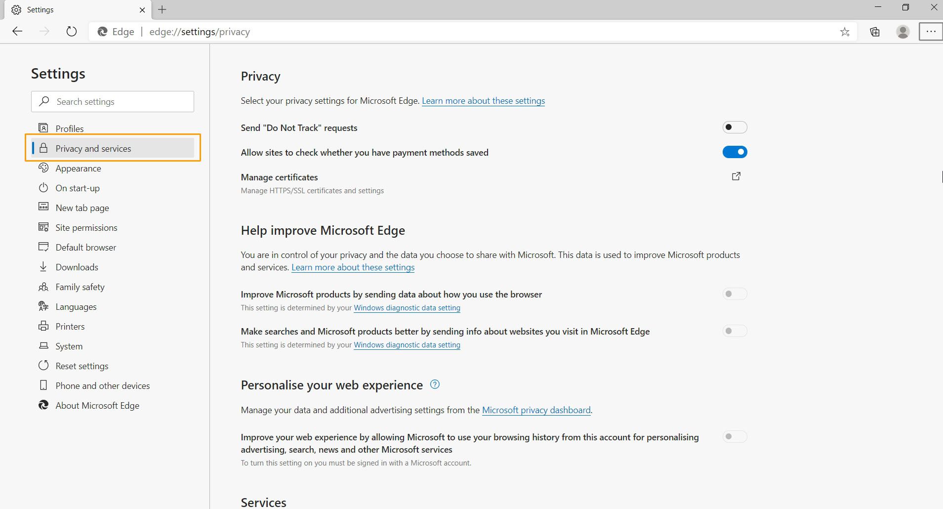 Open "Settings" in Edge browser system.