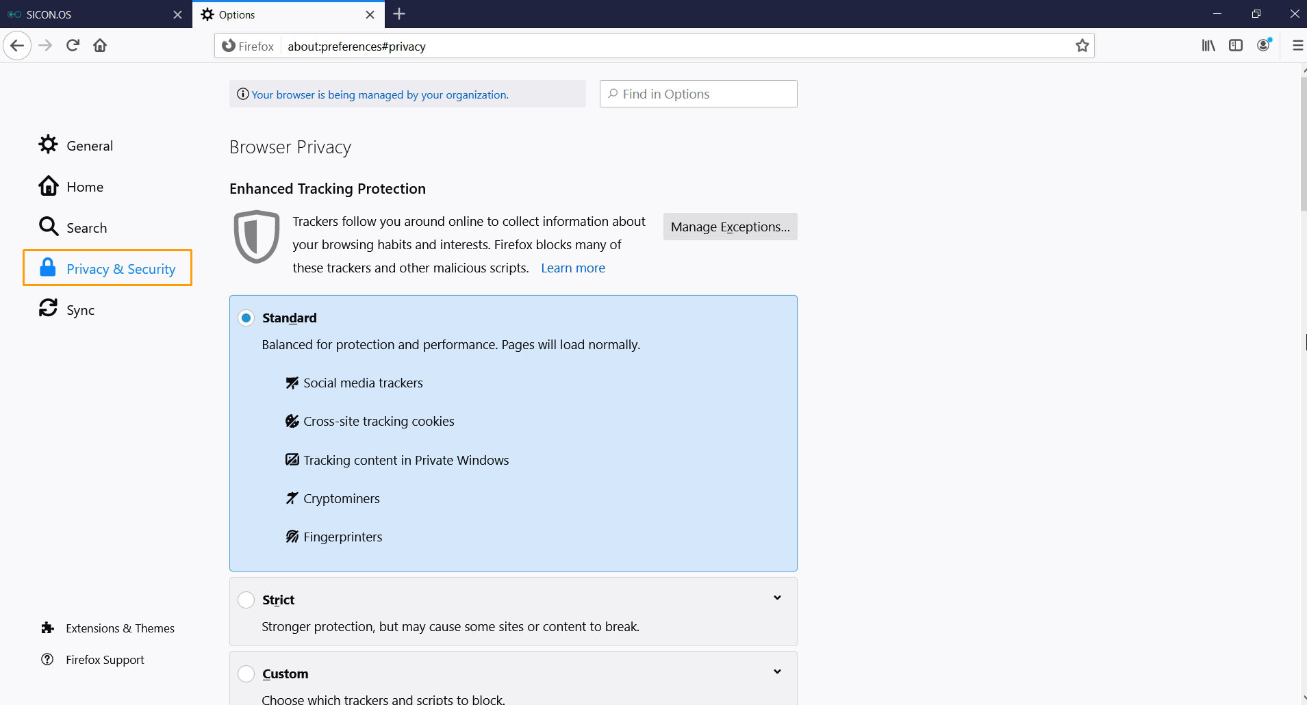 • In Edge browser open your SICON.OS website.