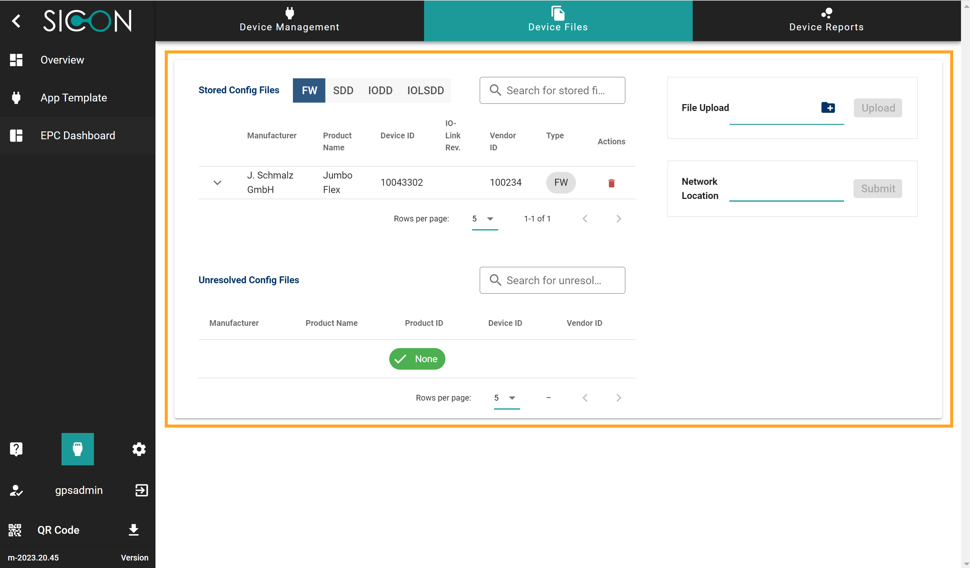 Management of IODD/IOLSDD/SDD and Firmware incl. connection to finder.service.sicon.eco