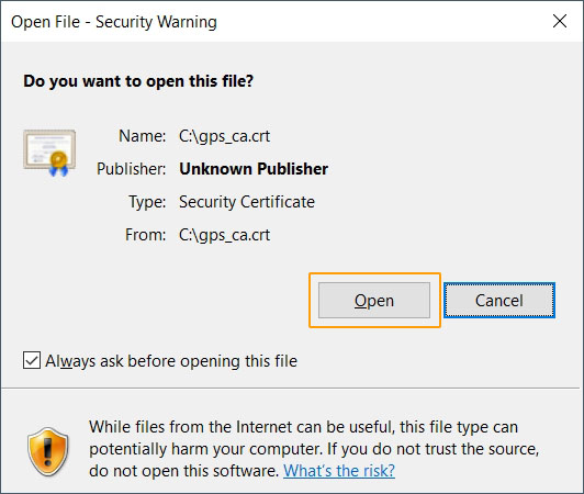 First step is to get our root certificate. Please download the GPS Root Certificate file from below.