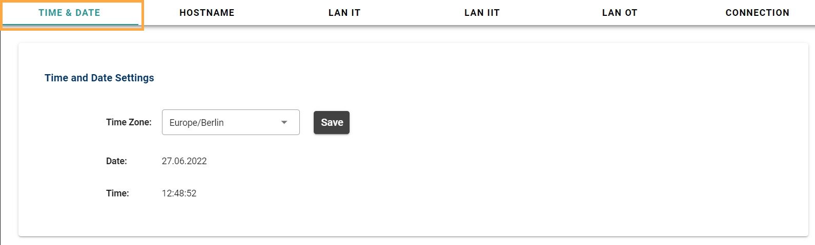 Here you can manage the Time and date settings.