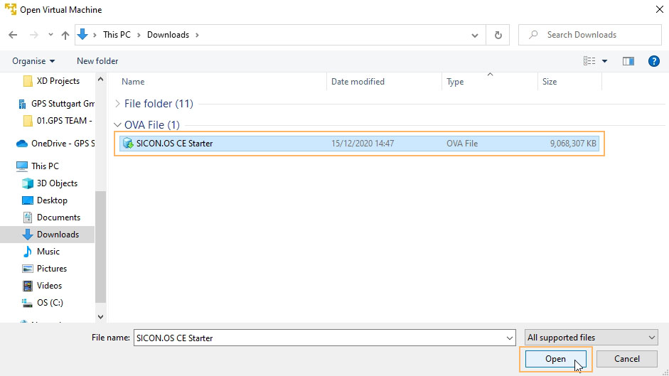 Click on File and then click on Open to select the downloadable file (SICON.OS VA)