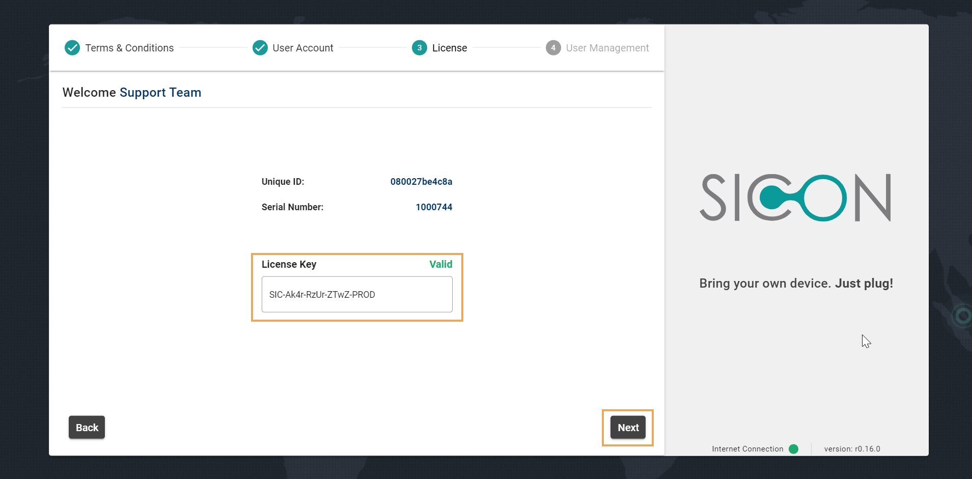 Please note down the Username and Password as it is required to login to SICON.OS.